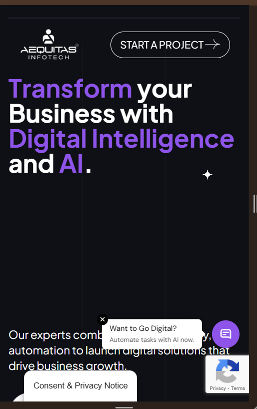 Aequitas Infotech needed a platform to showcase their diverse IT consulting, web development, and AI-driven services clearly. The challenge was to organize technical solutions, client case studies, and service details in a way that was engaging, easy to navigate, and visually appealing, without overwhelming visitors.